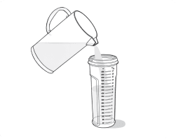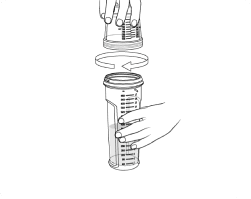 Screw the dosing cup tightly onto the mixing bottle and gently invert the mixing bottle back and forth at least 20 times.